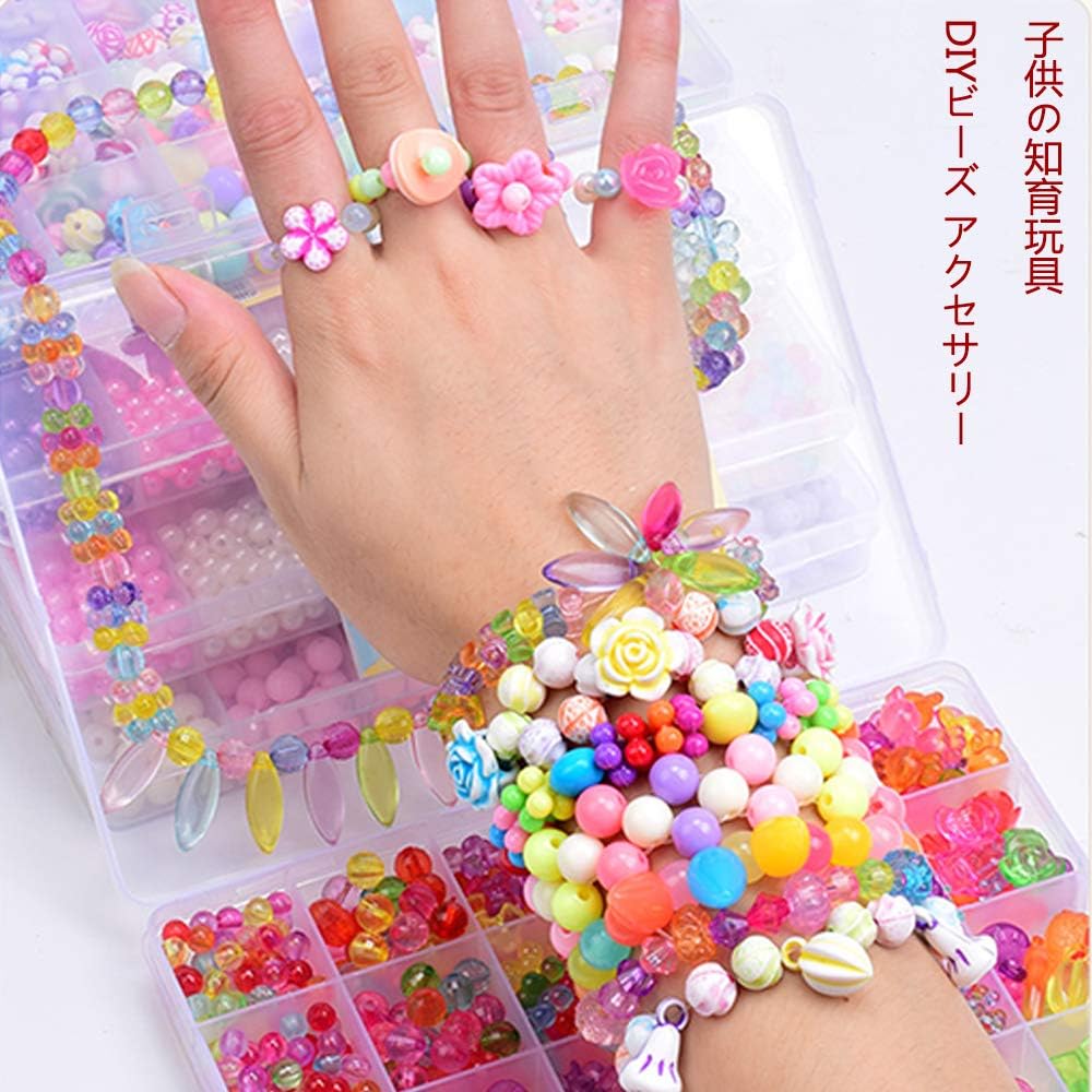 Amazon Tian 改良版24種類 カラービーズ 大容量 セット日本語説明書付き キッズ 手作り おもちゃ ビーズ アクセサリーキット 収納ケース付き カチューシャ ネックレス ブレスレット ビーズキットハンドメイド Diy材料 知育玩具 右脳開発 女の子 子供のお誕生日